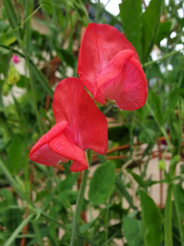 May is the time to plant out Sweet Peas (if you haven’t already!). Make sure they’ve been hardened-off outdoors for a few days in a cold frame or sheltered spot beforehand. They are hungry and thirsty plants, so mix plenty of rich, moisture-retaining peat-free or home-made compost into the soil. You’ll need to put some supports – a trellis, obelisk or somesuch – for them to climb up. Here at Horatio’s Garden we are using hazel poles, arranged in a ‘wigwam’. Keep the plants well-watered, and tie them in loosely to the supports as they grow. This year I am growing several varieties which have purple-pink flowers, so there should be some harmony among the flowers later in the summer. My all-time favourite is ‘Cupani’, with its heavily-scented purple and magenta flowers, which first came to Britain from Sicily in 1699.