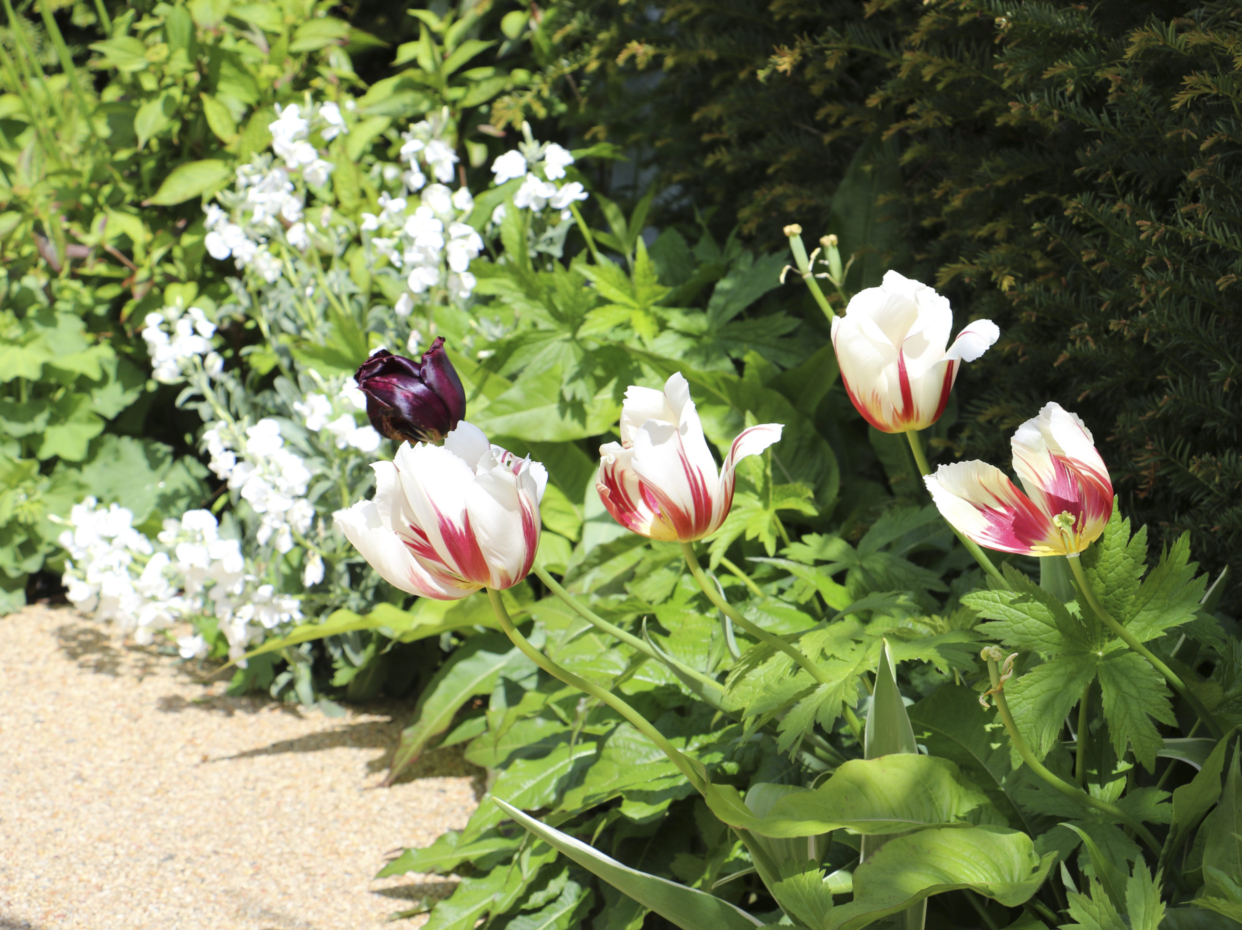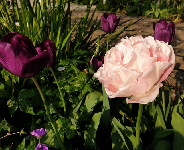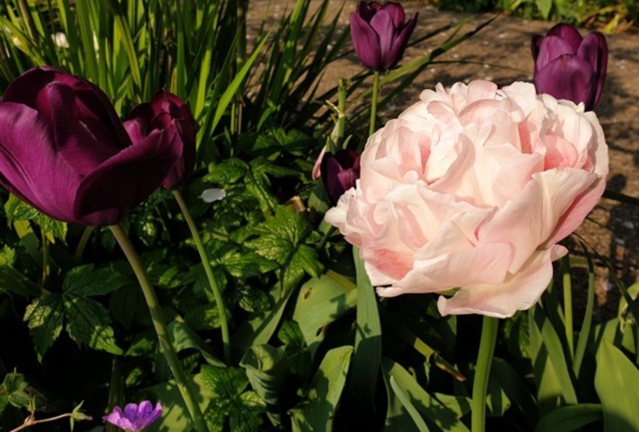 Here at Horatio’s Garden Midlands I have selected some lily flowering tulips, which have petals which curve outwards on strong, tall stems, and some peony tulips which are late blooming, full, luxuriant double flowered tulips. These are not good for pollinators unfortunately, but if you want to plant tulips for bees, apparently they like violet coloured varieties and when planting for bees, it’s important to avoid double flowers of any type.