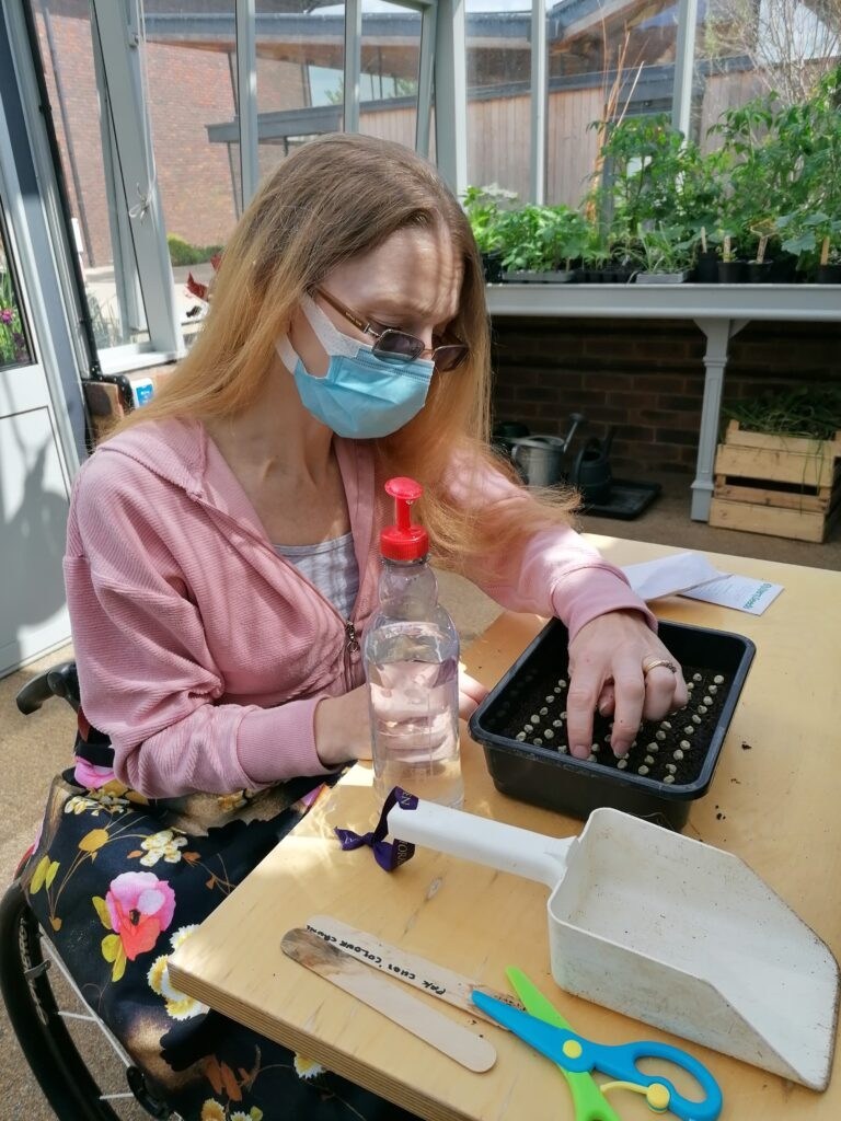 Gardening with Head Gardener Amy has really been like a course, an education. I’ve developed new skills which I’m going to take home with me and continue. My husband has already got a list of what I’ll need for growing lots of plants, especially microgreens, which I’d never heard of before! He’s going to try and sort out raised flower beds and so on, so that I can carry on gardening when I’m home. I’m looking forward to that and much more besides.