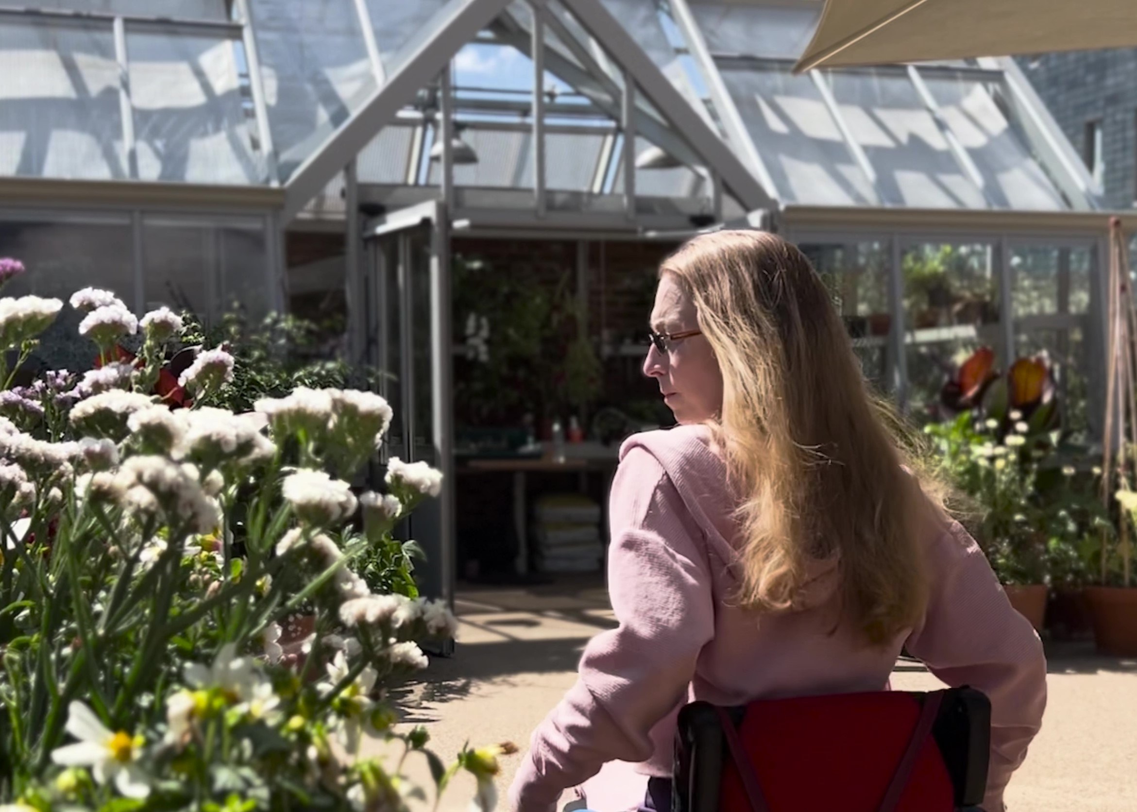 I think this stay would’ve broken me, if I hadn’t had the garden. It’s so social, you can go to the garden room, you can make drinks for people. I’m very much a person who likes to help, but I know from being paraplegic and being in a wheelchair to wait until they’ve really had a good go, and then say, ‘Do you want me to give you a hand?’. There are people here who give you the chance. In other places they just assume you’re not capable, so that’s been very nice.